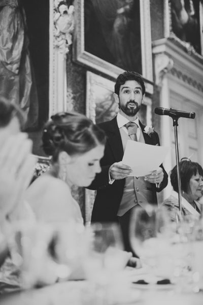 Dinner was held in the Grand Ballroom beneath the paintings and high ceilings that define the room. It’s an impressive setting by any standard. Long tables, candlelight, guests settled in for speeches and a long evening ahead. Goodwood House does this kind of wedding exceptionally well. There’s space for impact, but also room for it to feel considered rather than excessive.
